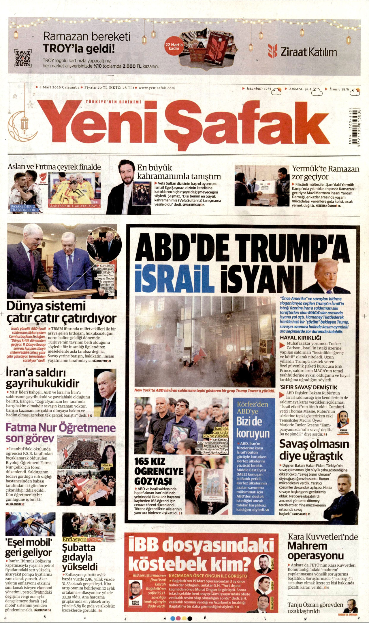 YENİ ŞAFAK Gazetesi 04 Mart 2026, Çarşamba Günü Manşeti